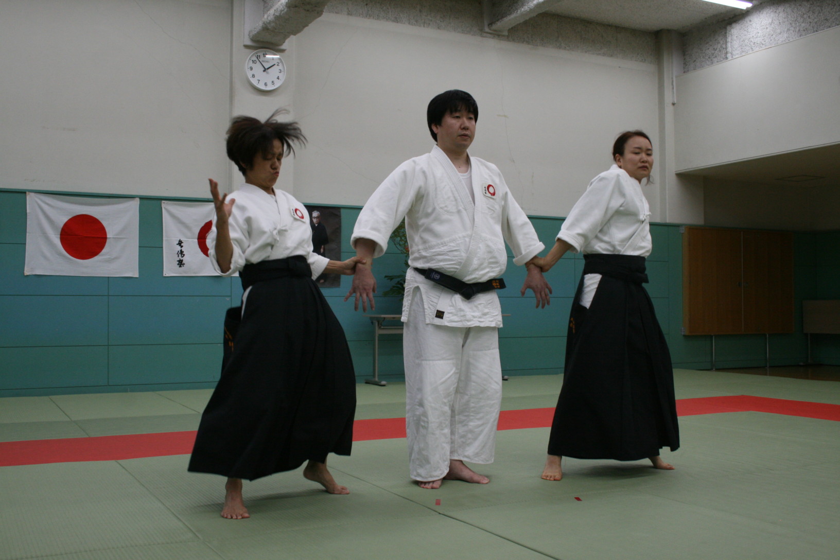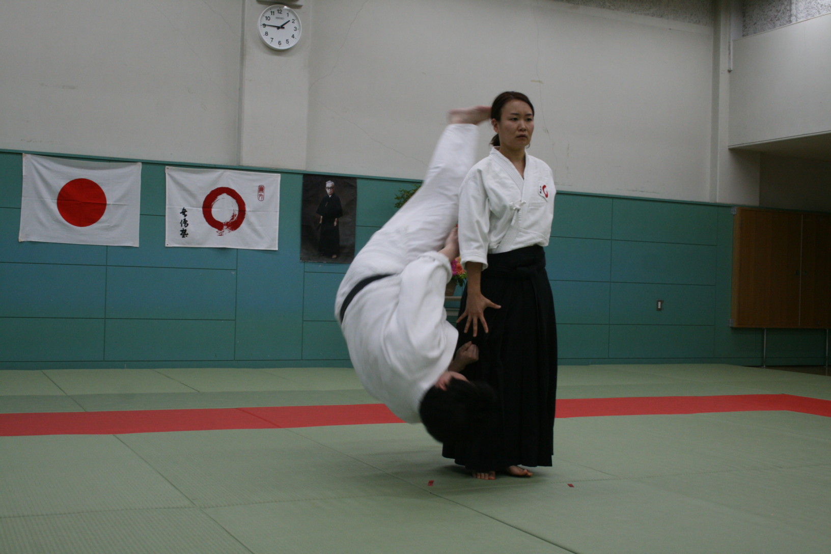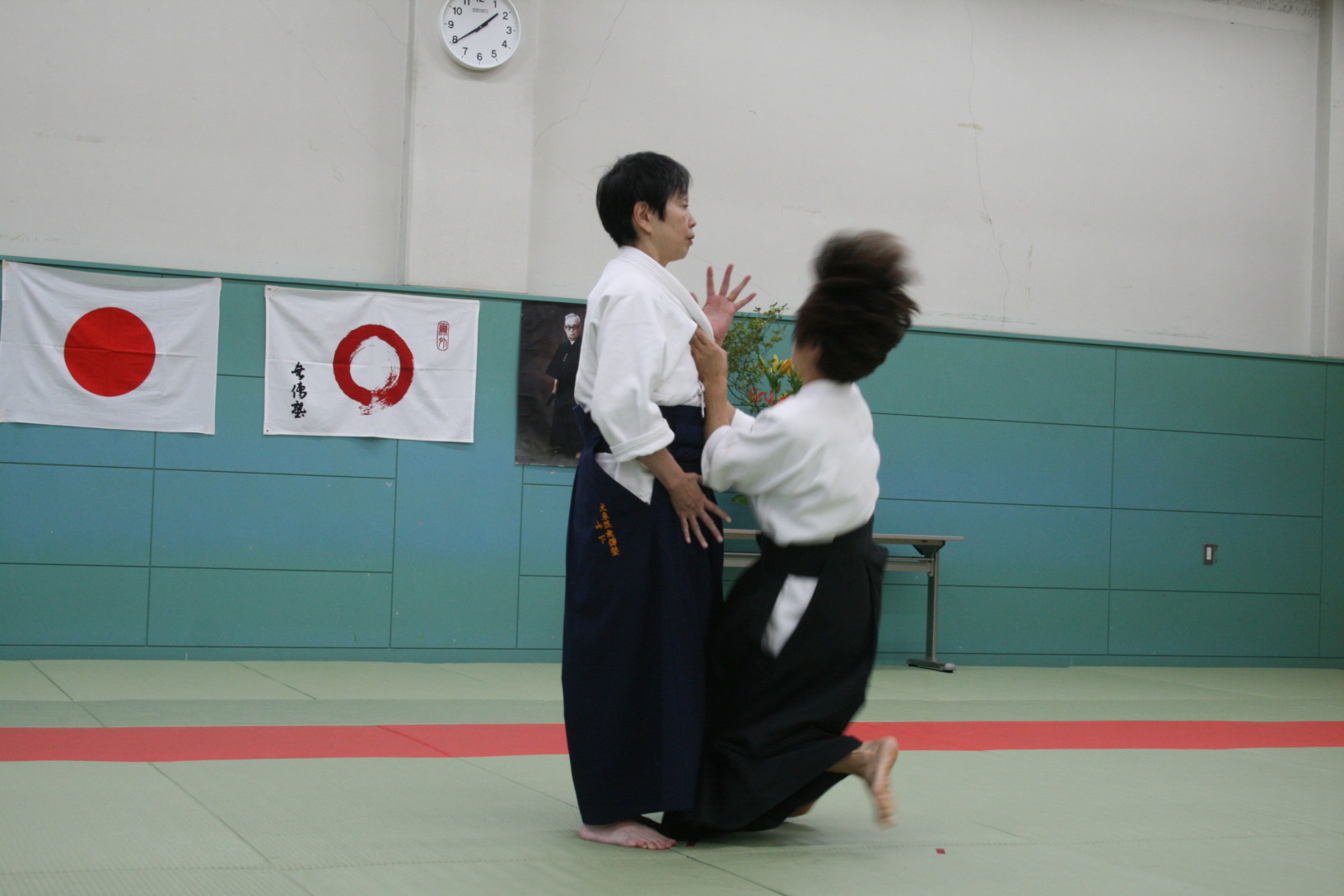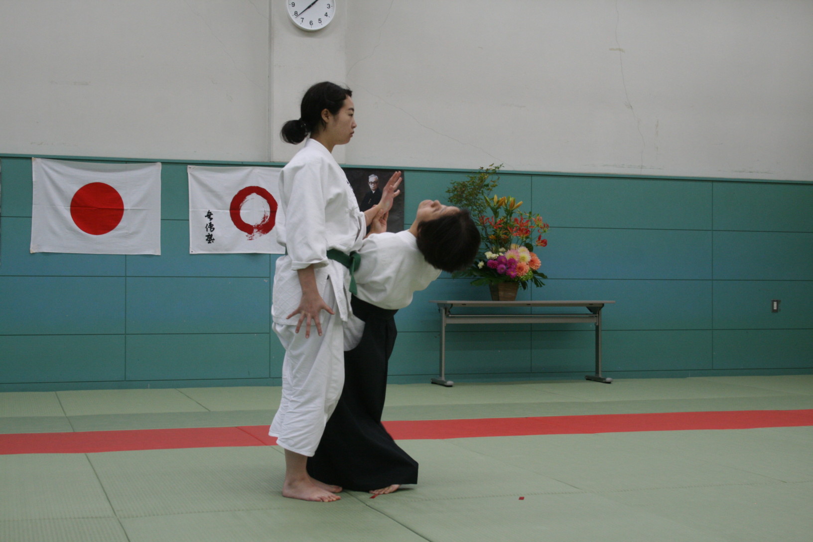 合氣で崩れているので素早く且つインパクトのある技で投げることが出来ます。