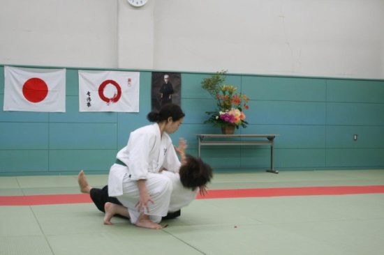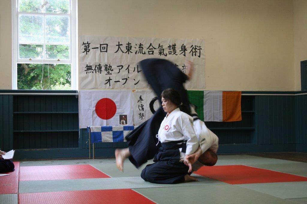 A practitioner of Daito Ryu Muden Juku Ireland Branch, Megumi Bourke, demonstrating a technique. Using aiki, one does not need to rely on brute strength. Daito Ryu techniques are therefore beneficial for men and women of all ages.